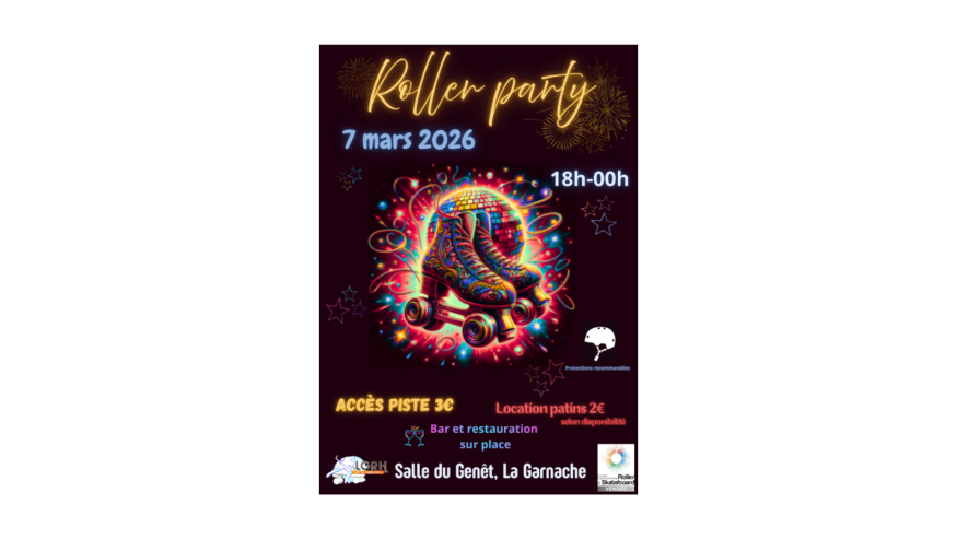 Le club LGRH La Garnache Rink Hockey organise une Roller Party ce samedi 7 mars de 18h à minuit.