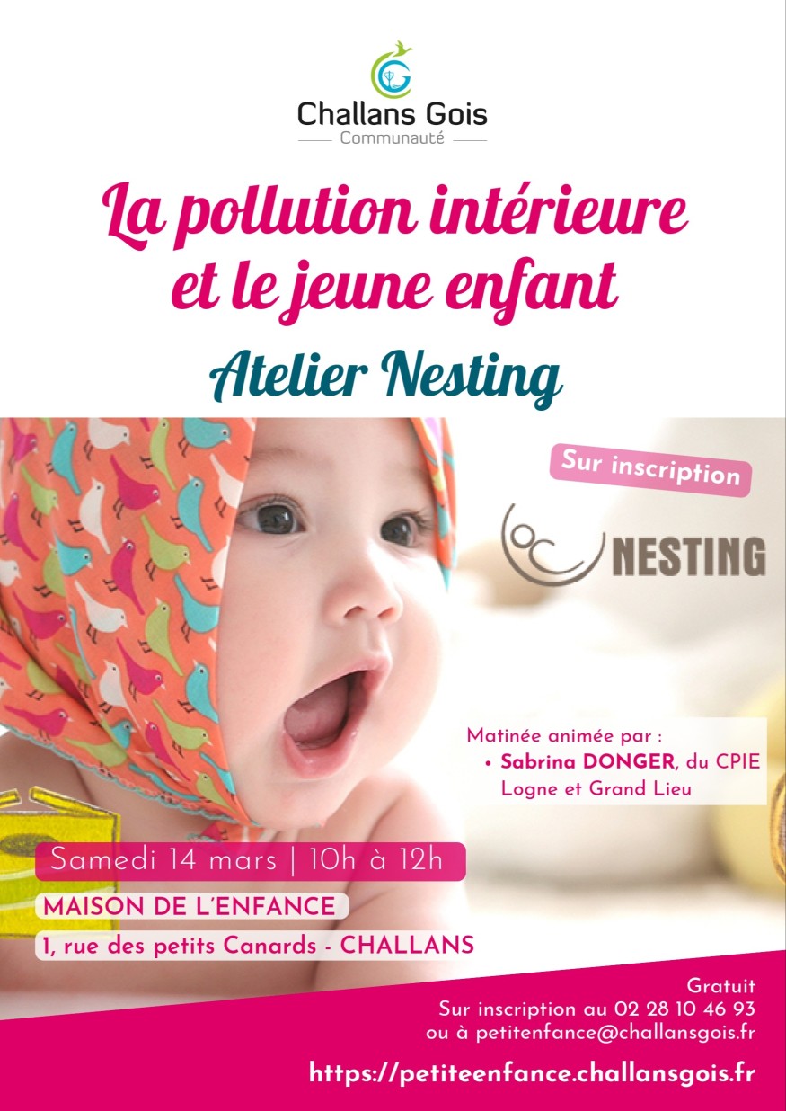 Une info de Challans Gois Communauté : un atelier sur la pollution intérieure et le jeune enfant est programmé samedi 14 mars, de 10h à midi, à la Maison de l'enfance.