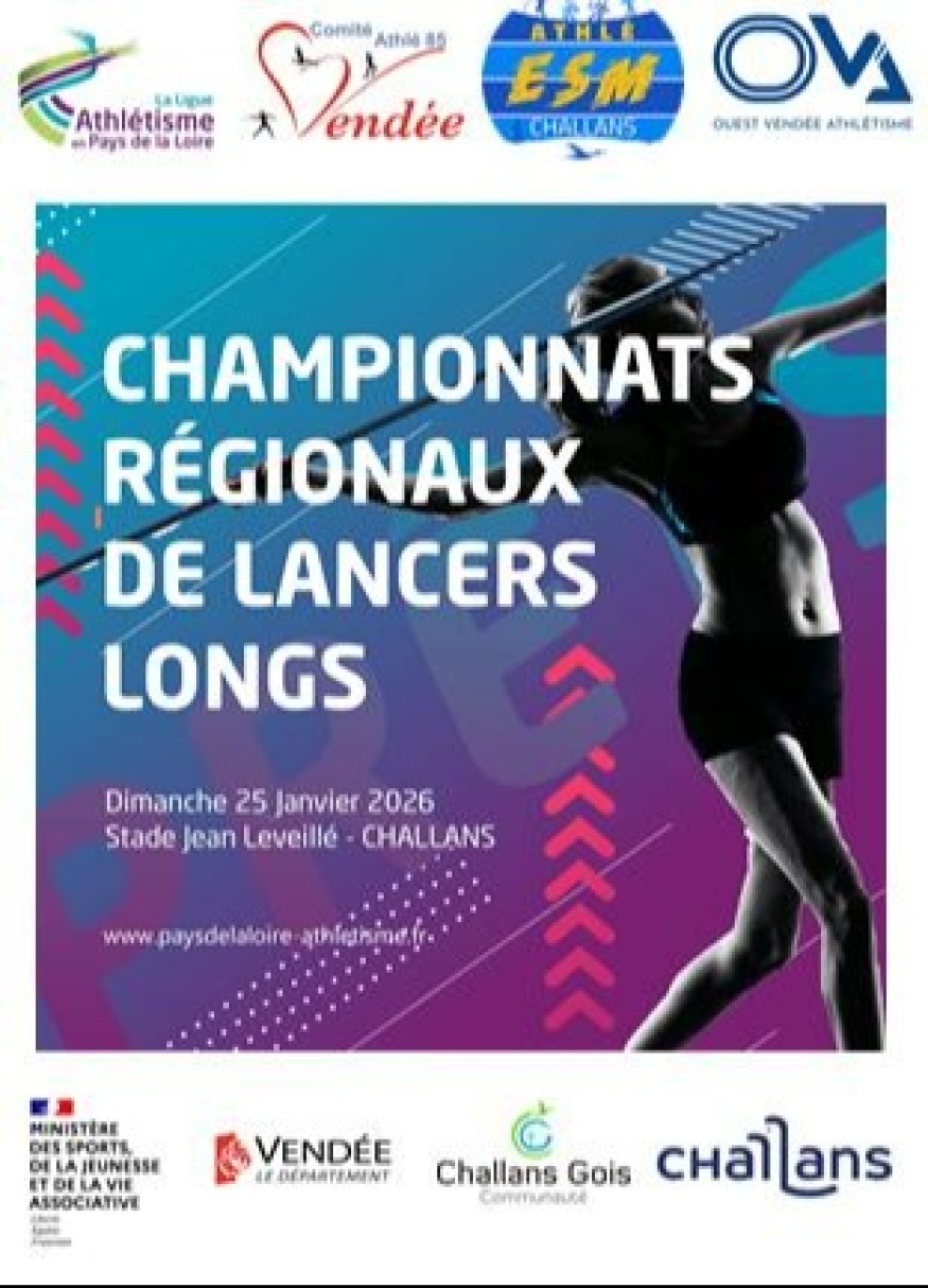 Les Championnats régionaux de lancers longs hivernaux c'est dimanche, de 10 heures à 17 heures. Stade Jean Leveillé à Challans. Lancer de javelot, disque et marteau... On en parle avec Jo Baron, vice-président de l'ESM athlétisme Challans.