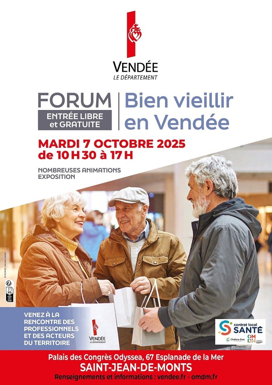 A Saint-Jean-de-Monts, Océan Marais de Monts et le Département organisent un forum Bien vieillir en Vendée, mardi 7 octobre. Plusieurs dizaines de stands seront installés à Odyssea, Palais des Congrès. La journée ponctuée d’animations.